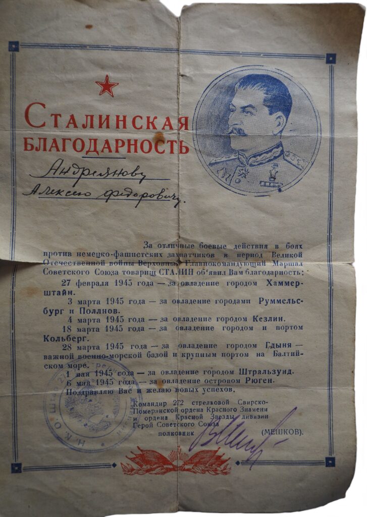 ГлавнаяМедвежьегорский районФотографии Благодарность за отличные боевые действия Андриянову Алексею Фёдоровичу. Скан-копия. Не датирована. Из семейного архива Андриановой В.П. Страховое удостоверение Андрияновой Е.В. Скан-копия. Не датирована. Из семейного архива Андриановой В.П.
